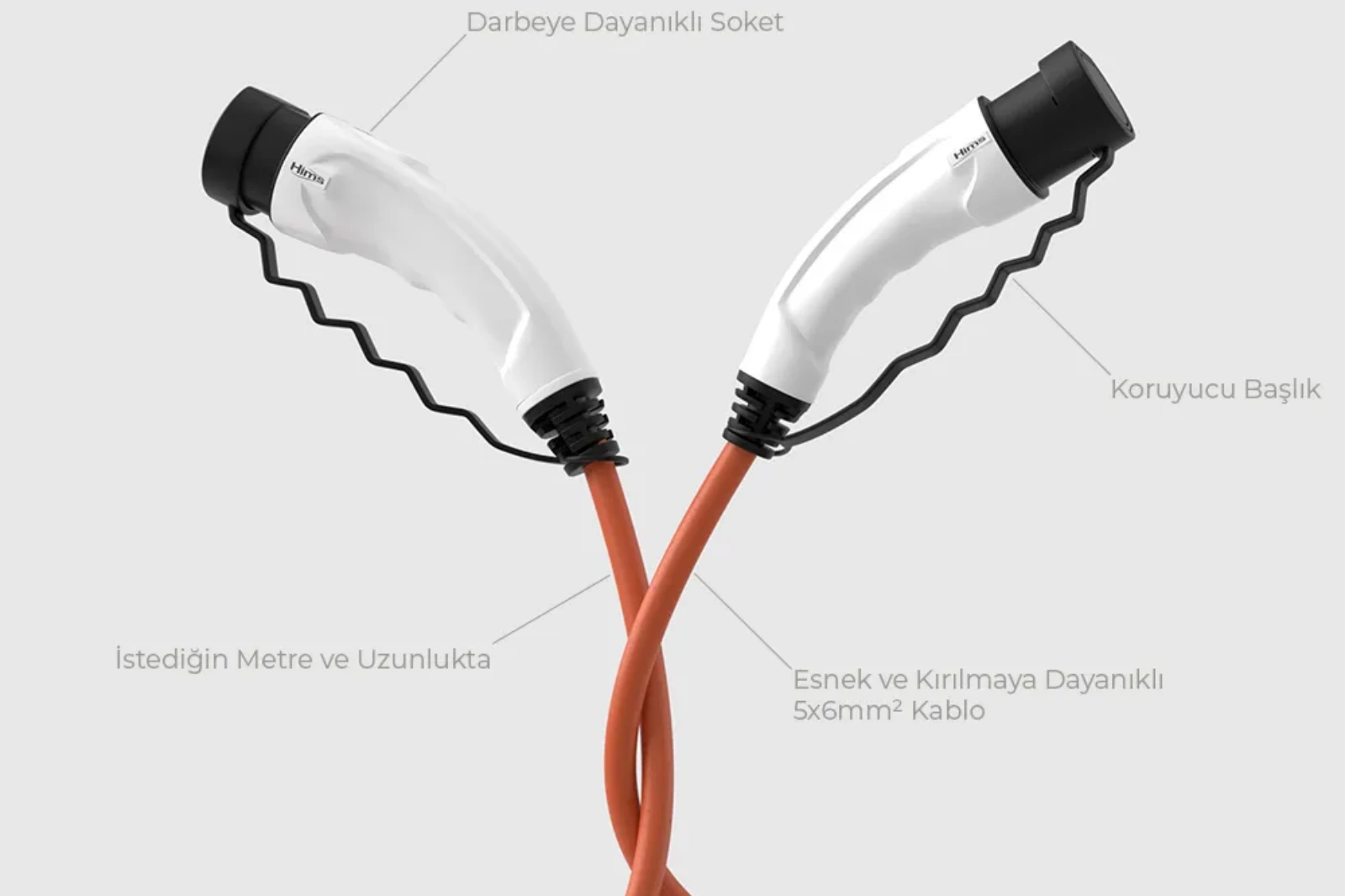 HIMS 3 Metre 22kW Type 2 Elektrikli Araç Şarj Kablosu – Turuncu EV Şarj Kablosu